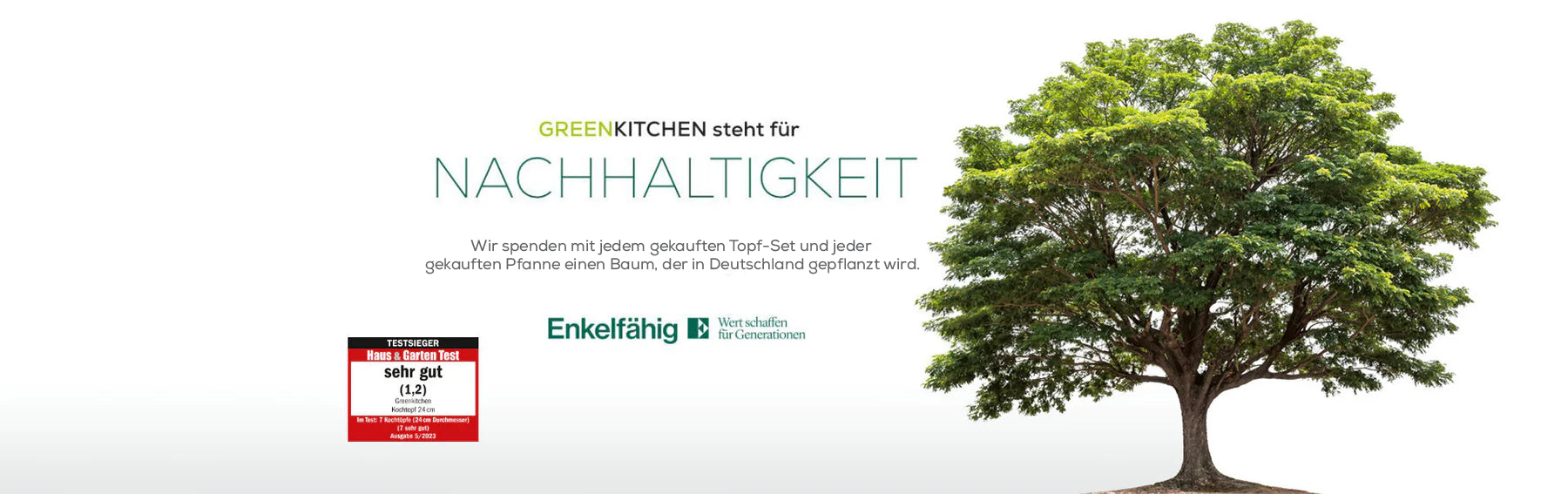 In Kooperation mit Planet Tree haben wir die GreenKitchen Baumpflanzaktion ins Leben gerufen: Für jedes verkaufte Produktset und jede verkaufte Pfanne wird ein Baum in Deutschland gepflanzt (aktuell in Mecklenburg-Vorpommern). Jeder gepflanzte Baum leistet durch CO2-Kompensation einen wertvollen Beitrag zum Klimaschutz.