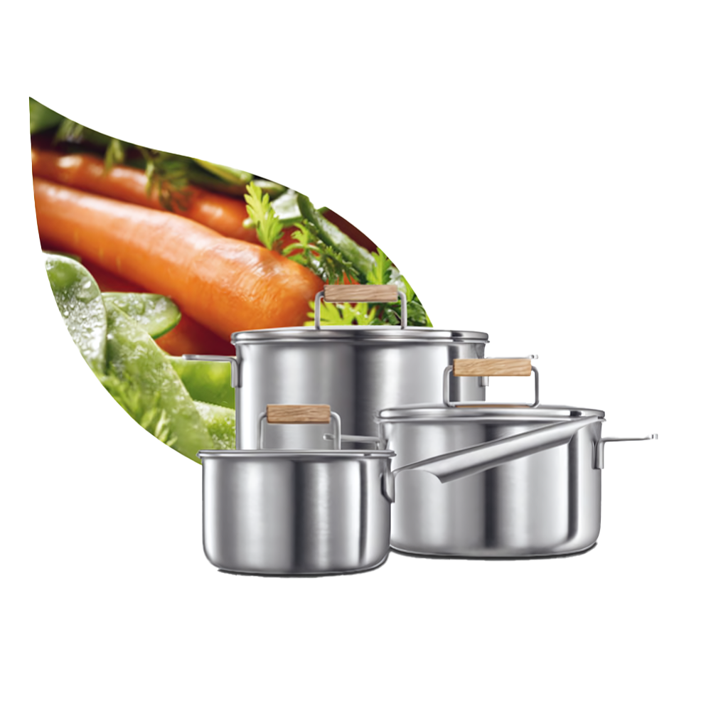 Ihr nachhaltiges Küchengeschirr der Marke GreenKitchen – ein Begleiter fürs Leben. Effizientes Kochgeschirr für schnelles und energiesparendes Kochen. Die Töpfe mit der eingebauten Booster-Funktion, durch die dreilagige Hightech-Materialkombination (3-Ply). Unsere Töpfe ermöglichen ein gleichmäßiges Erwärmen über den Boden und die Seitenwände.